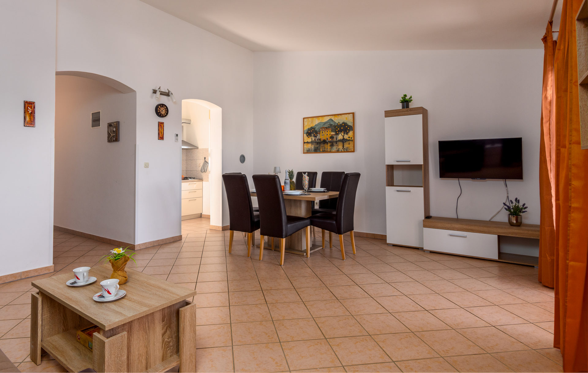 Apartmanunk tökéletes választás pároknak, családoknak. Nyugodt környezetben helyezkedik el, mégis minden alapvető dolog karnyújtásnyira található. Átmenő forgalomtól mentes, a partra vezető utcában található a strandtól 200 méterre.